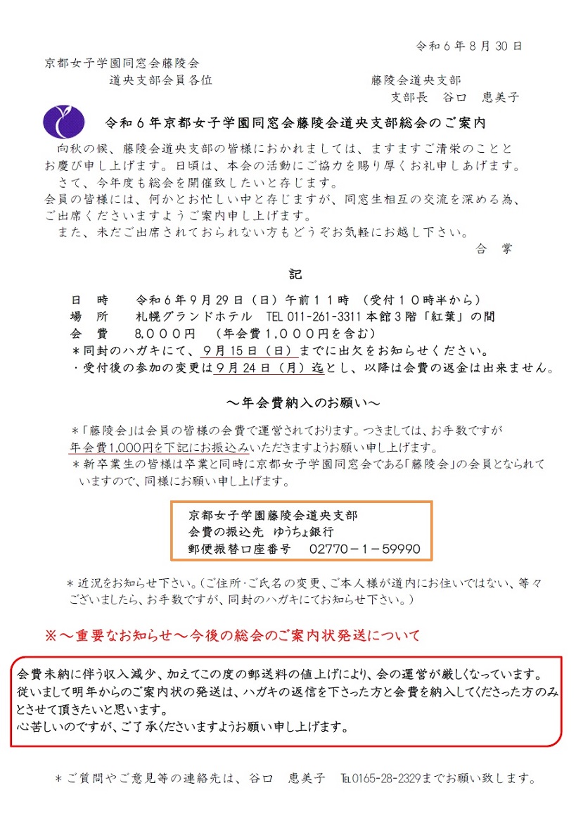 令和6年9月29日、11時より道央支部総会を札幌グランドホテルにて開催いたしました。