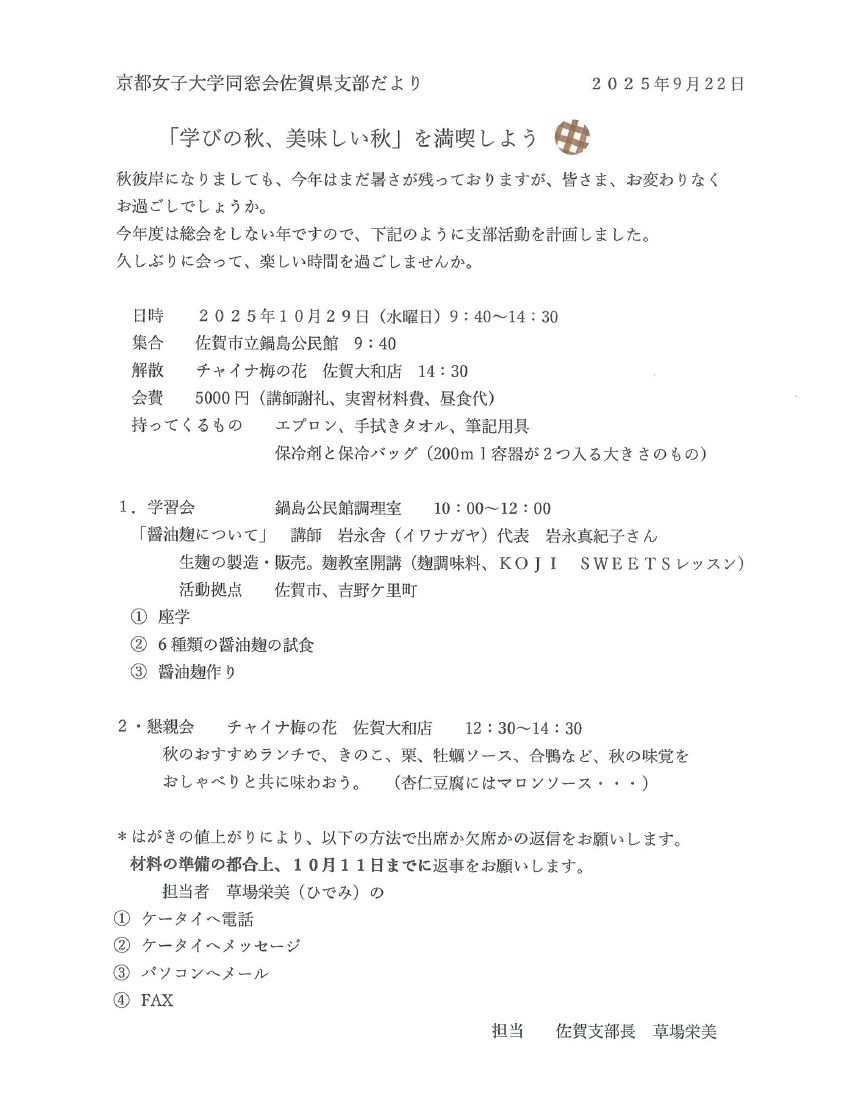また今年は、佐賀支部の小冊子を作成予定で、会員に原稿依頼をしているところです。